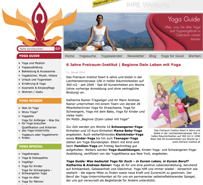 Ganzer Artikel: https://www.yogaguide.at/news/6-jahre-freiraum-institut-wien-beginne-dein-leben-mit-yoga