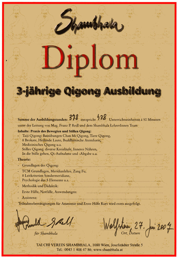 - Diplomierter Yoga-Lehrer (200 hours), zertifiziert bei der Yoga Alliance.